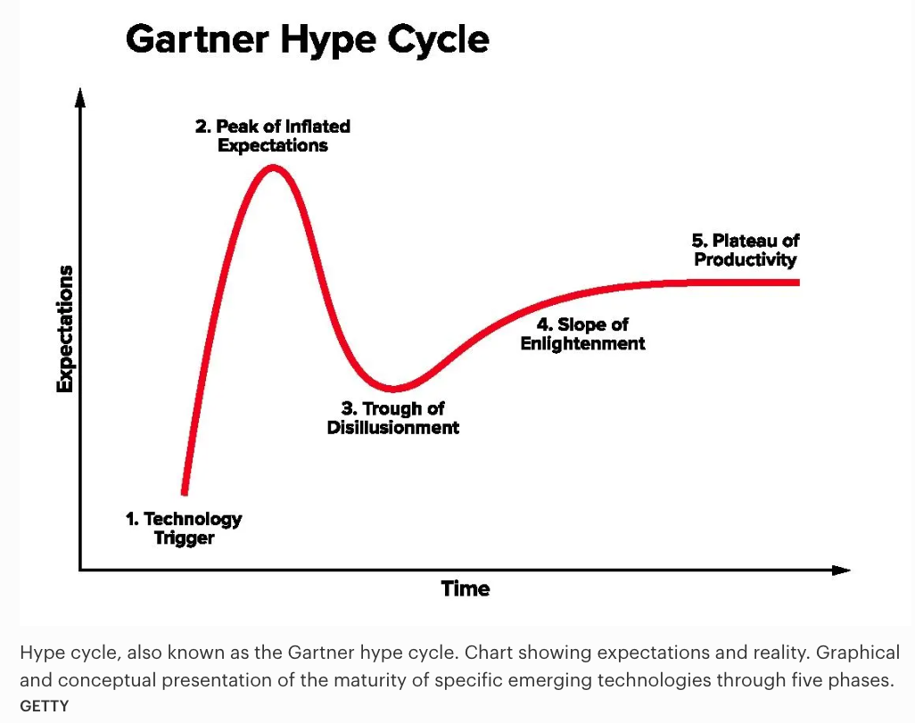 The companies with sustainable e-auction programs are the ones who figured out how to talk about e-auctions to suppliers and stakeholders. The most successful businesses were not the companies who figured out the right categories to auction, but the companies who figured out how to tailor their negotiation approach to each bid. All of this sounds like AI right now. The companies who will succeed with AI are those who recognize that it’s merely a tool, and that humans are still needed to clarify, refine, and communicate the use of that tool. Companies who laid off employees, expecting to replace them with AI, are realizing they have to hire those people back. While I’m not ruling out a world where robots replace people, I think we’re still deep in the hype cycle with AI and we’ve only begun the stare into the pit that is the Trough of Disillusionment.